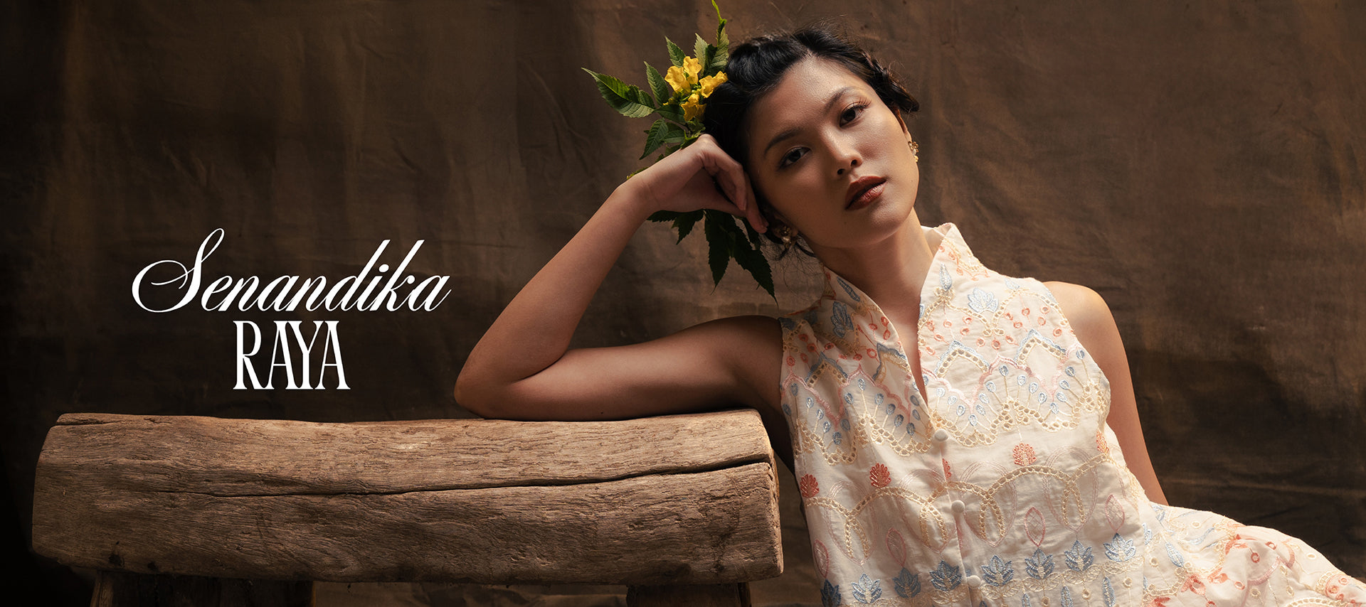Lembayung Fleur Embroidery Dress in Sand